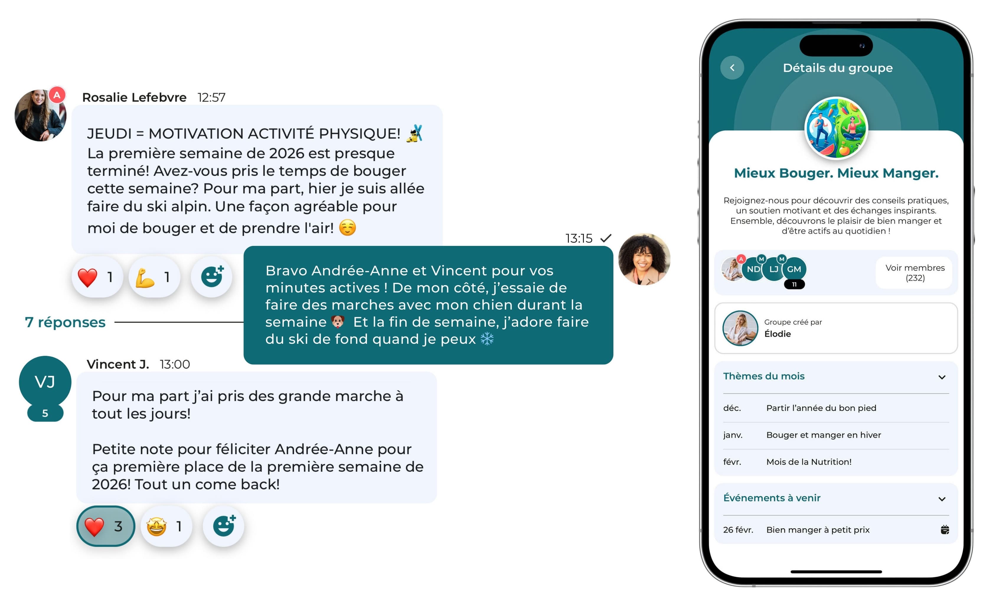 En plus d’être animés par une nutritionniste diététiste experte, ces groupes vous assurent un échange motivant, essentiel pour maintenir un style de vie sain.