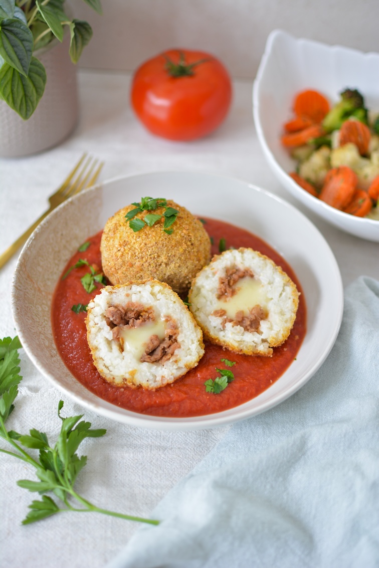- Cuire de 15 à 20 minutes, jusqu’à ce que les arancini soient dorés et croustillants. Servir chauds avec la sauce tomate.