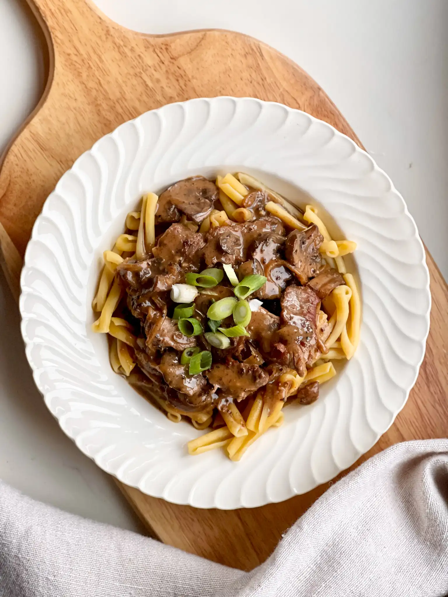 - Servir le boeuf Stroganoff sur les pâtes aux lentilles. Si désiré, garnir de persil frais, de ciboulette ou d’oignons verts avant de servir.