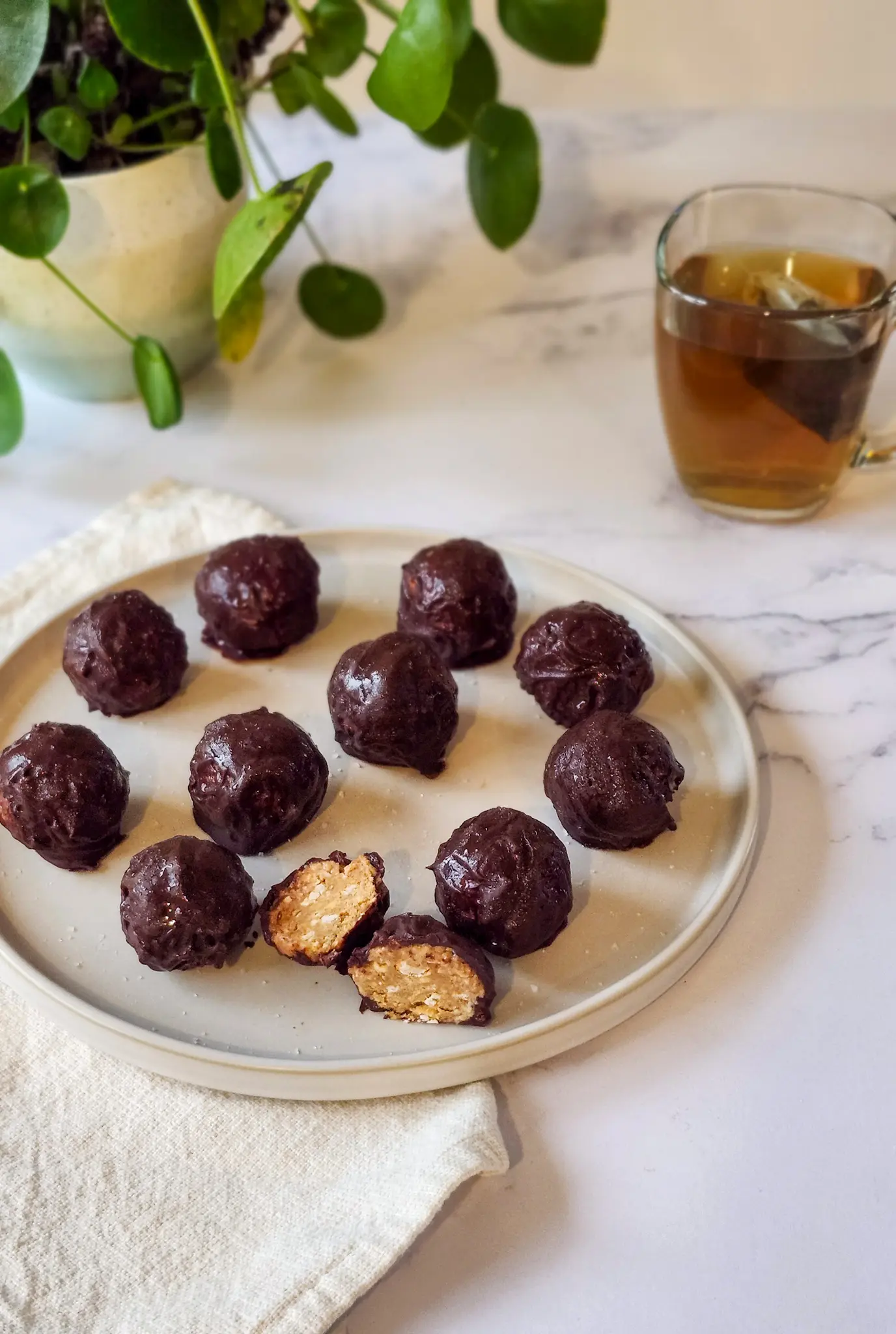 Voici une de mes recettes incontournables quand j’ai envie d’une douceur sucrée, mais aussi nutritive. Ces boules au beurre d’arachide se dégustent aussi bien en collation qu’en dessert. Je les garde au congélateur pour les avoir sous la main au besoin — c’est rapide, pratique et délicieux. J’en combine deux pour une collation plus soutenante. Une option simple et polyvalente, adorée par nos nutritionnistes ! Pour varier les plaisirs, essayez aussi nos boules d’énergie pomme-cannelle.