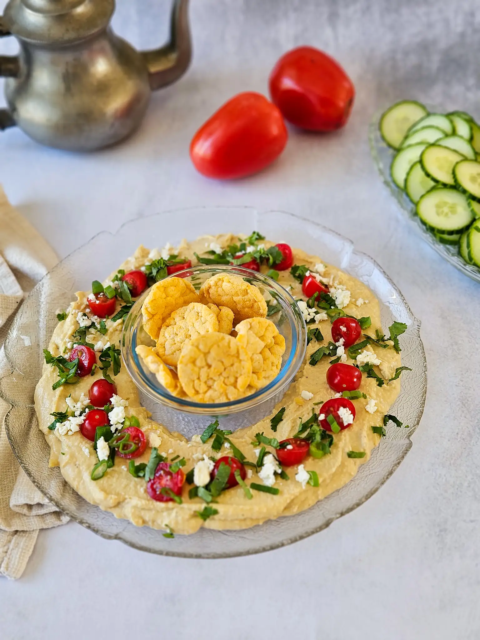 Idéale pour un brunch ou un apéro à partager, cette couronne de hummus allie simplicité, fraîcheur et originalité. Garnie de légumes colorés, d’herbes fraîches et de fromage feta, elle se transforme en trempette savoureuse et nutritive. Une idée pensée par une nutritionniste pour ajouter de la couleur à vos grandes tablées. Essayez-la avec nos craquelins de graines faciles!