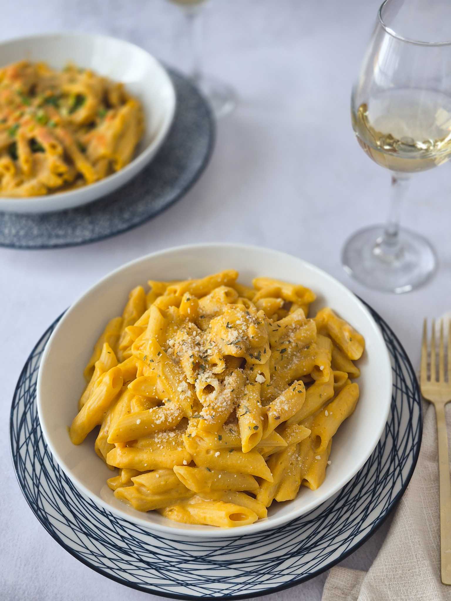 Cette recette de pâtes nappées d’une sauce onctueuse à base de courge rôtie, imaginée par une nutritionniste, goûte l’automne à chaque bouchée. Sa texture ultra crémeuse et sa belle couleur dorée transforment n’importe quel type de pâtes en un repas réconfortant et nourrissant. À la maison, elle s’est rapidement taillé une place parmi les classiques de semaine : simple à préparer et franchement délicieuse. Nos asperges à l’asiatique complètent parfaitement ce repas savoureux.