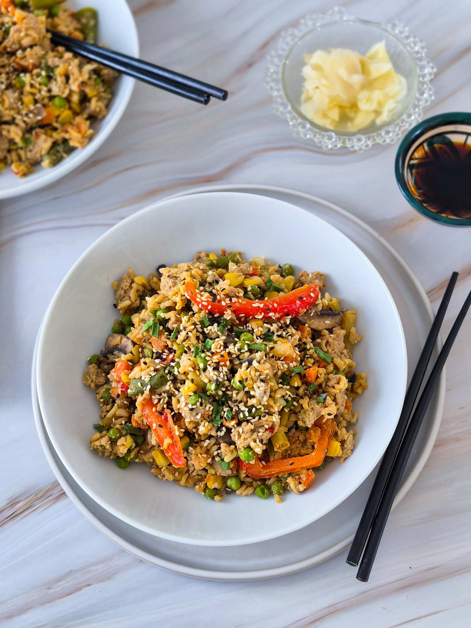 Quoi de mieux qu’un riz frit express qui prouve qu’on peut manger sainement sans passer des heures en cuisine! Grâce à des ingrédients pratiques du commerce, comme le riz prêt à servir et les légumes surgelés, cette recette permet de préparer un repas complet, riche en protéines, en fibres et en saveurs. C’est une option que nos nutritionnistes aiment recommander pour les soirs pressés ou les lunchs nutritifs, sans compromis sur la qualité. Pour encore plus d’inspiration, consultez nos 7 idées de soupers rapides pour les soirées pressées.