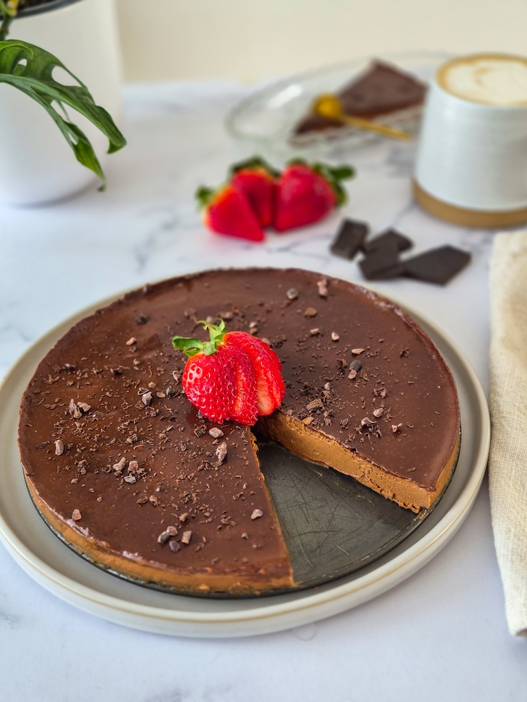 Une tarte au chocolat riche et onctueuse, sucrée naturellement grâce à la patate douce et au chocolat noir. Nos nutritionnistes aiment proposer cette option, car elle offre une touche gourmande tout en misant sur des ingrédients simples et nutritifs. Simple à préparer, elle est parfaite pour servir un dessert savoureux qui impressionnera vos invités. Pour plus d’idées, visitez notre Top 10 de desserts santé.